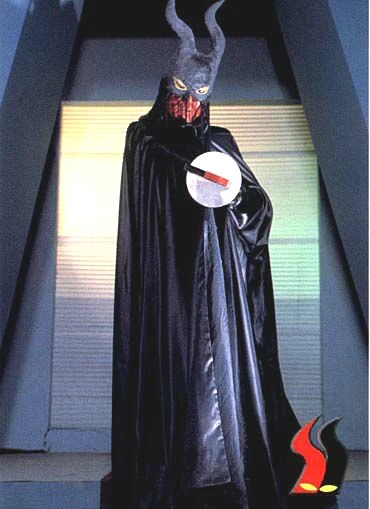 Big Shadow (ビッグシャドウ, Biggu Shadou) is the great leader of SHADOW. He is overjoyed at the suffering of humans and carries out ruthless operations such as the 10 million murder plan by Computer Black Satan. Initially, only the silhouette appeared, but the main body was revealed in the Episode 20. A monster wearing a black mask and cloak, but its identity is unknown. He shared his fate with SHADOW's base in the final episode.